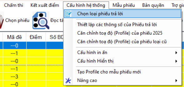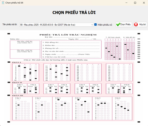 - Chọn đúng mẫu phiếu với mẫu phiếu đang thực hiện chấm