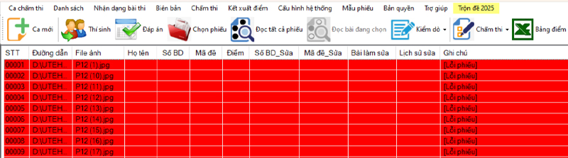 Lỗi khi quét bài thi