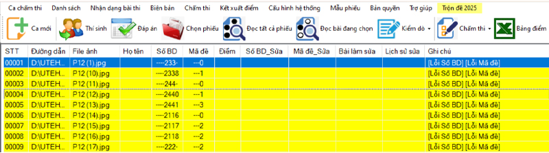 - Không thể chấm do nhập sai mã đề: Thí sinh tô sai, thiếu hoặc tô nhiều ô mã đề. Mã đề chưa nhập vào phần mềm hoặc nhập sai.
