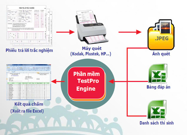 - Scan phiếu trả lời bằng máy scan chuyên dụng.